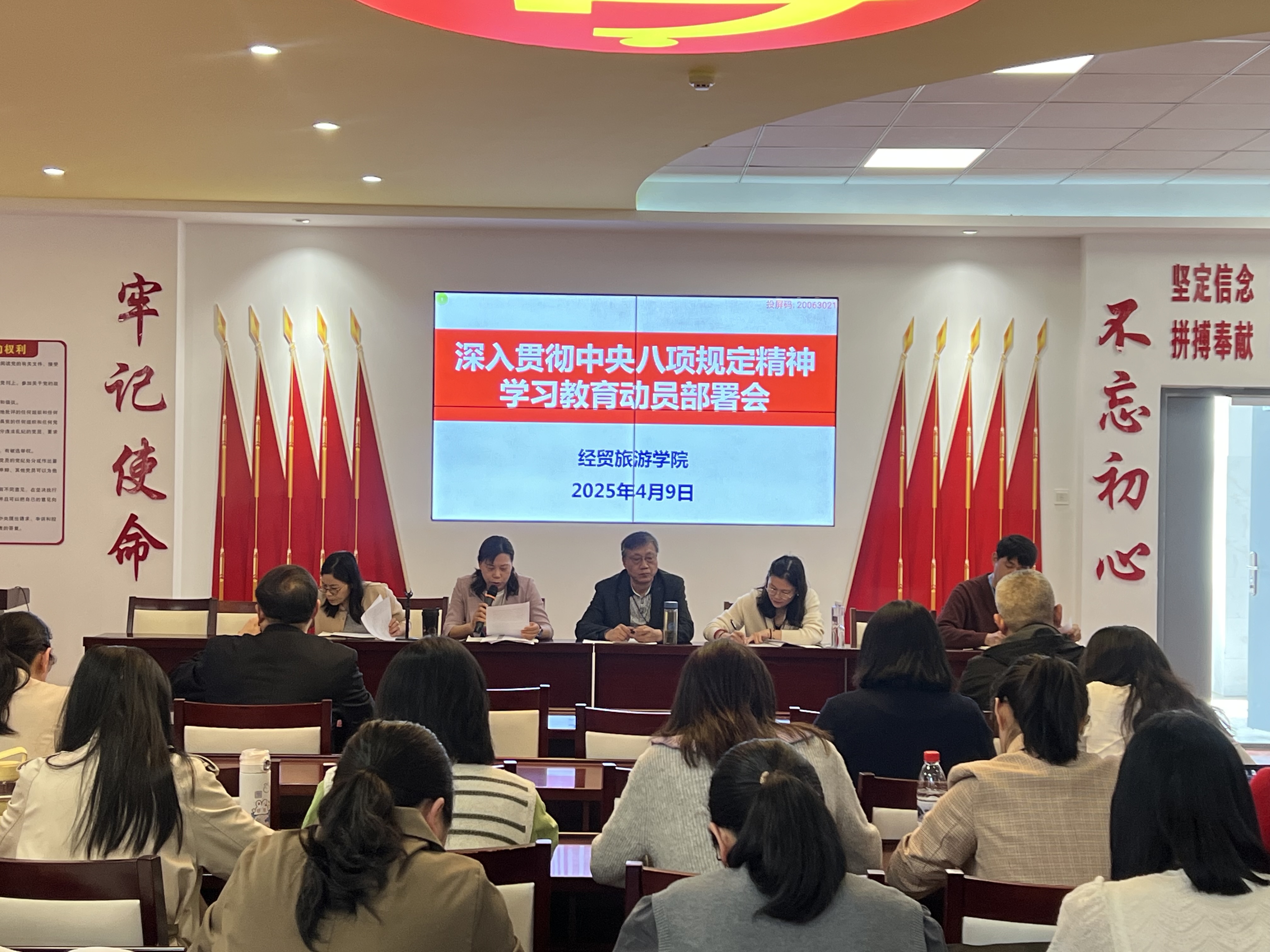 为全面落实中央八项规定精神,强化党风廉政建设,推动全面从严治党向纵深发展,4月9日下午,永利集团304am登录在党性体验馆召开深入贯彻中央八项规定精神学习教育动员部署会。学院党政、全体教职工参会,会议由副院长付晓兰主持。