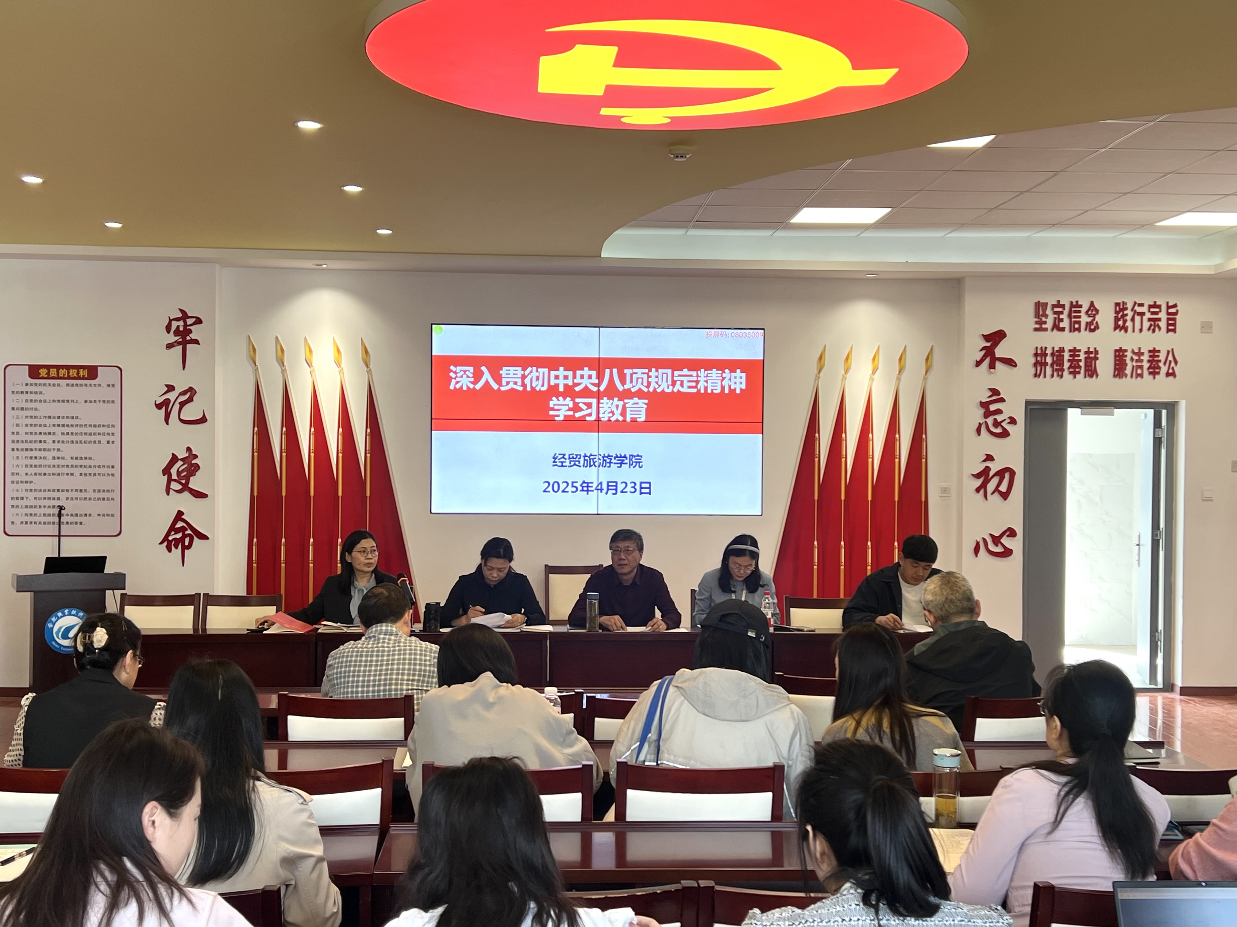 4月23日下午,永利集团304am登录在党性体验馆开展深入贯彻中央八项规定精神学习教育暨全体教职工大会。学院党政、全体教职工参会,会议由副院长付晓兰主持。