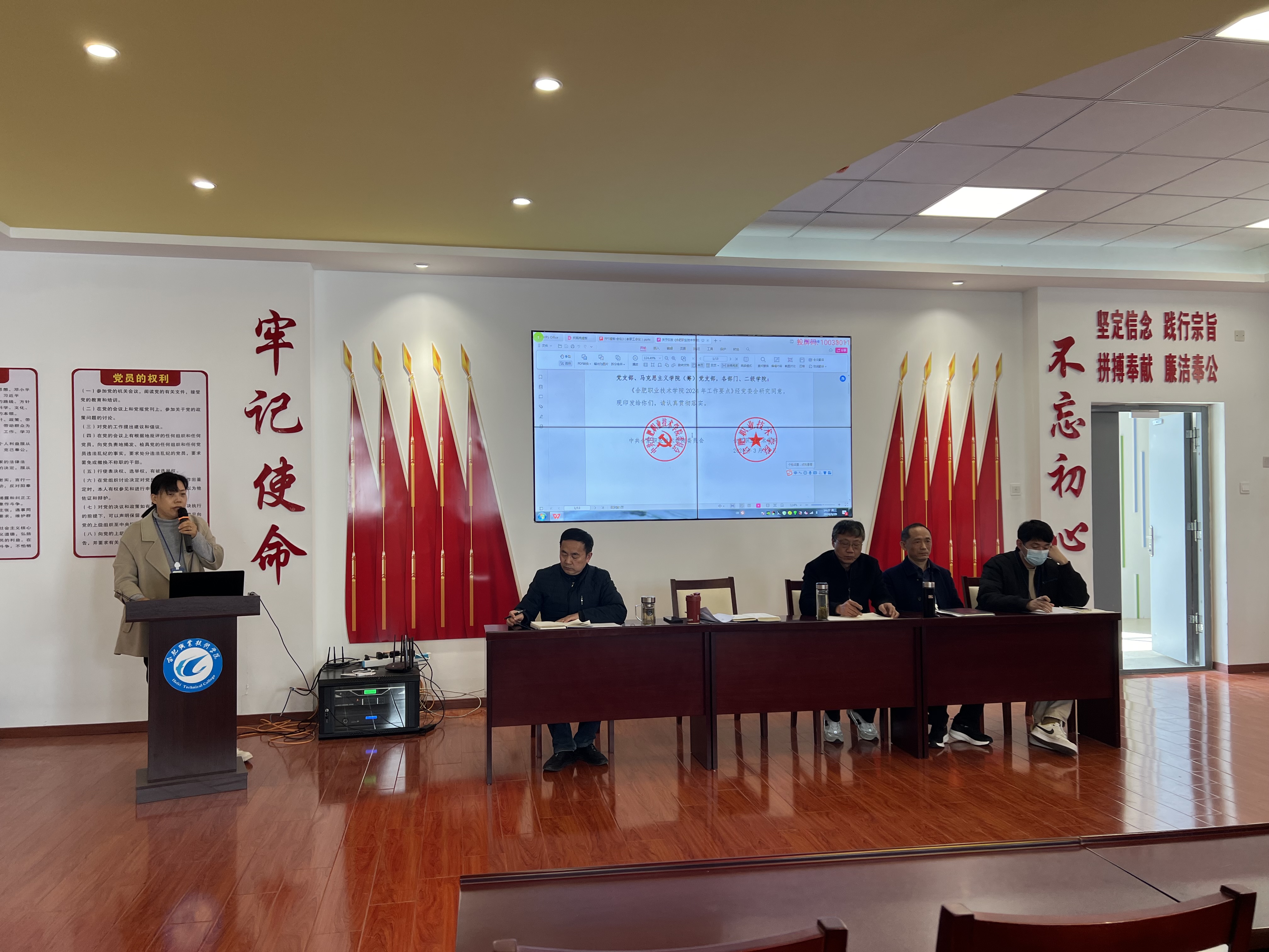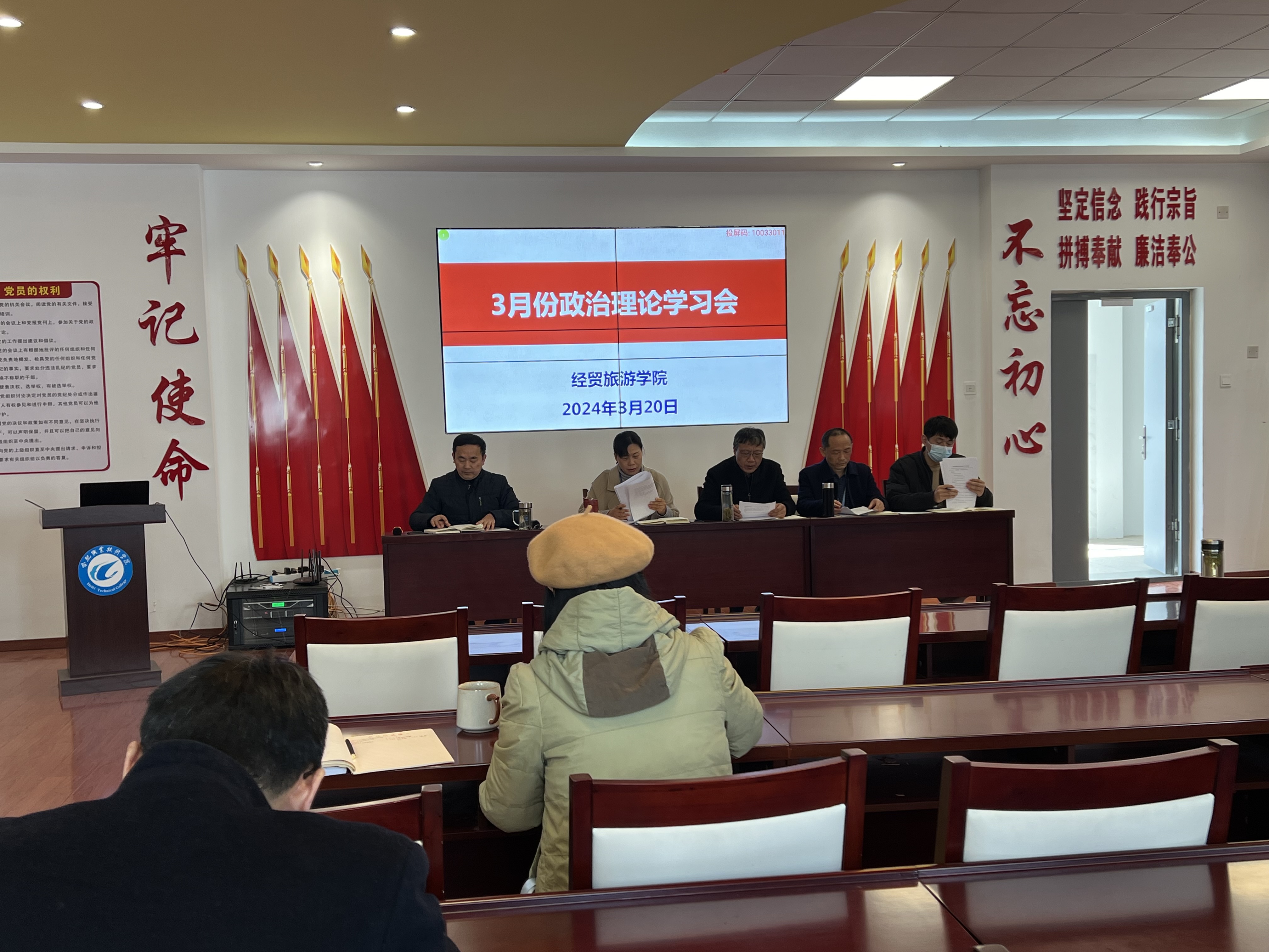为进一步提升教职工政治理论素养,持续深化教育教学改革,扎实推进各项重点工作,3月20日下午,永利集团304am登录在党性体验馆召开3月份政治理论学习会暨全体教职工大会。学院党政、全体教职工参加会议,会议由副院长陈继林主持。