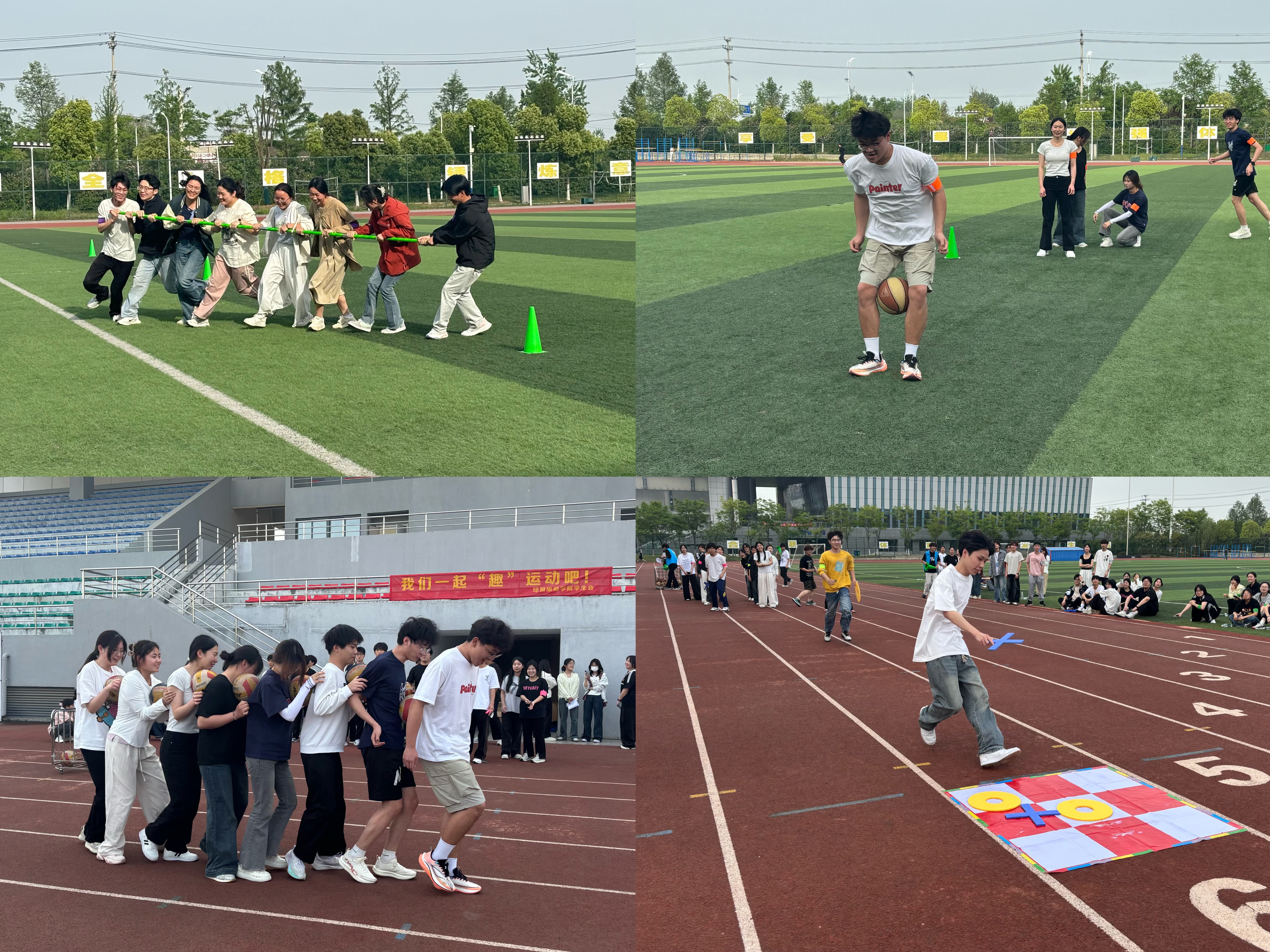 下午4点,比赛正式拉开帷幕。本次运动会设置了“胸部夹球竞走”,“袋鼠夹球跳”,“旋风跑”和“急速三子棋”多项趣味竞技项目,既考验个人技巧,又强调团队协作。在紧张激烈的比拼中,同学们默契配合,展现了蓬勃的青春朝气。