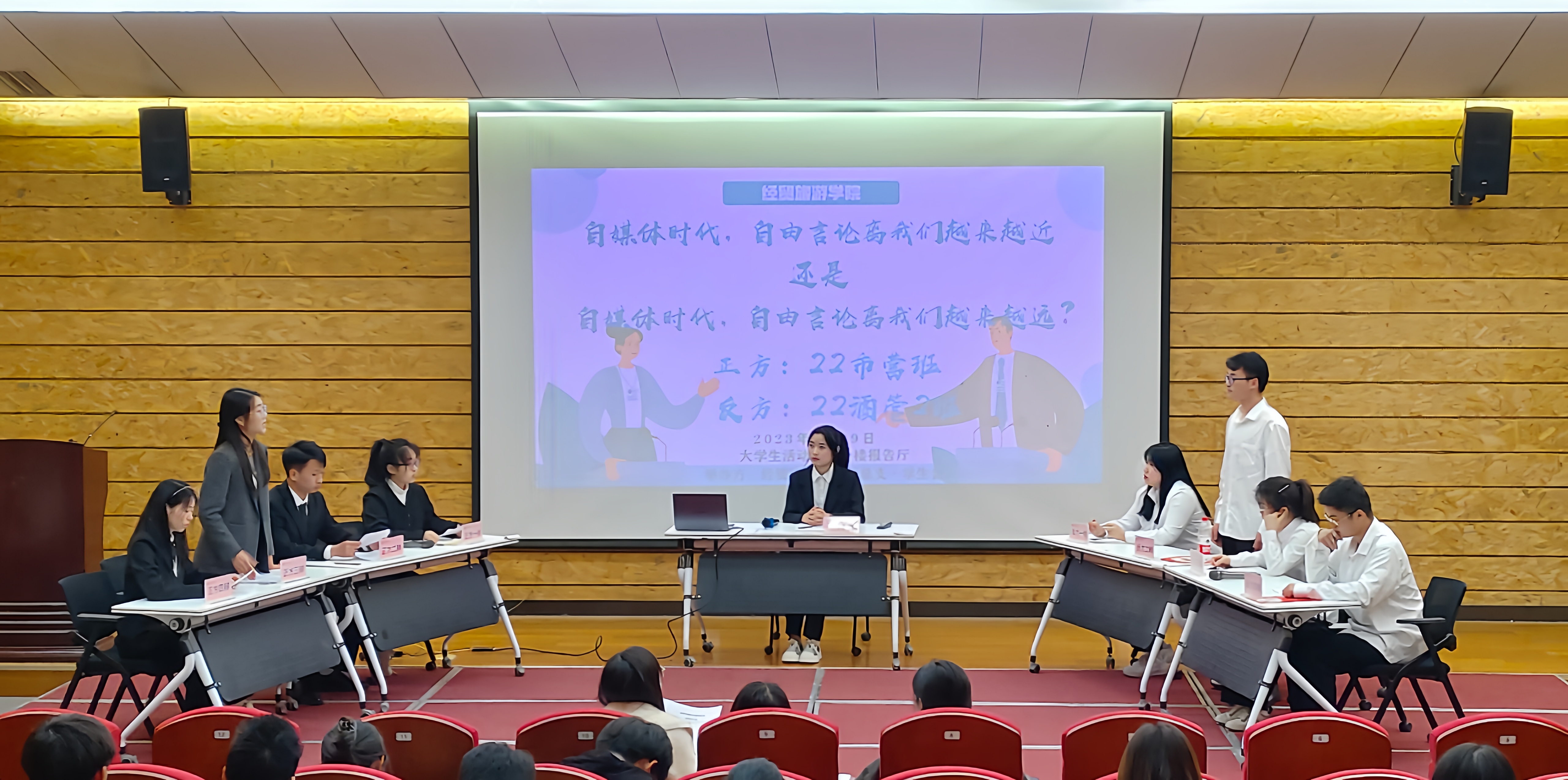 辩论伊始,双方运用理论来引出观点,并结合典型事例进行分析概括;自由辩论期间,双方辩手各据营垒,思路清晰,问答环环相扣,从举例论证到实战说明,频出金句;总结环节,辩手们的发言言简意赅,表达能力清晰,逻辑思维缜密。整场辩论精彩纷呈,一次典故的引用、一次强烈的反攻、一次牢固的守擂……扣人心弦,充分展现了语言的艺术与魅力。