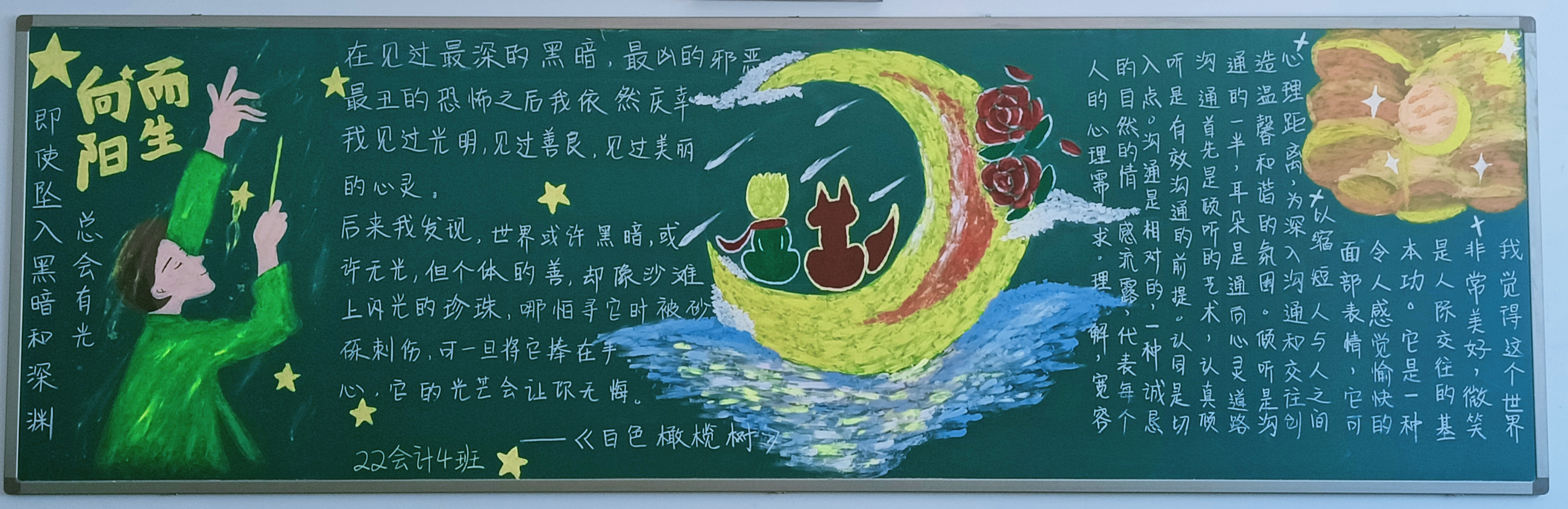 此次心理健康主题黑板报评比活动,能够普及心理健康基础知识且营造良好的心理健康氛围,引导学生树立正确的健康观念和提高学生心理健康意识。活动最后从主题、版面、板书、内容等方面进行考核,最终评选出一等奖为22大数据与会计5班,二等奖为22大数据与会计2班和大数据与会计1班,三等奖为22大数据与会计4班、22会计信息管理班和22旅游管理2班。