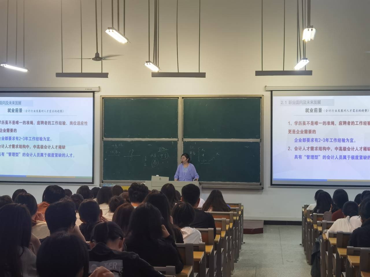 此外,会计教研室吕英老师和电子商务教研室邵敏老师也分别在汇心湖校区南教学楼101教室和109教室为23级会计信息管理专业和电子商务专业的同学们组织开展了主题鲜明的专业思想教育。