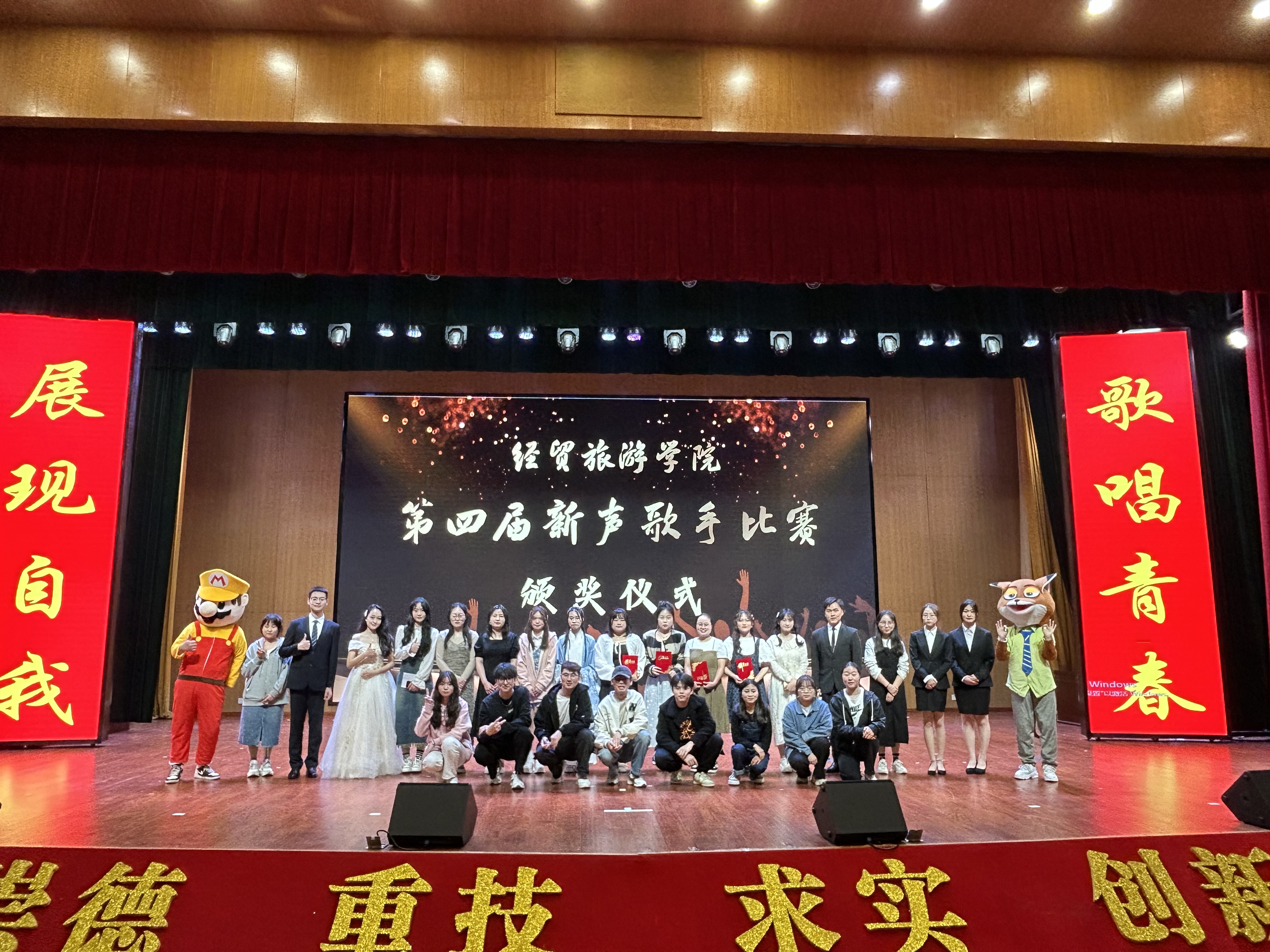 经过激烈的角逐,来自22电子商务班的曹锦同学通过美妙动听的歌声荣获一等奖,22电子商务班的方静茹同学获得了二等奖,22酒店管理2班的朱梦颖同学获得三等奖,22会计1班的邵俊红同学台风稳,舞台表现力强,荣获最佳台风奖。