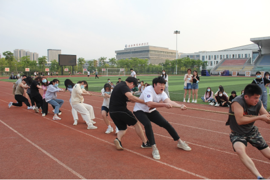 裁判吹响哨子,比赛正式开始的那一刻,拉拉队队员们响彻云霄的呐喊声就是参赛选手最好的“兴奋剂”,选手们用尽全身力气,咬紧牙关坚持对抗,即便磨红了手也紧紧抓牢手中的绳,勒绳下腰,降低重心,齐心协力往后拉,经贸学子在操场上拔出了精彩与激情,展现了活力与智慧,充分体现了经贸学子顽强毅力和拼搏精神,