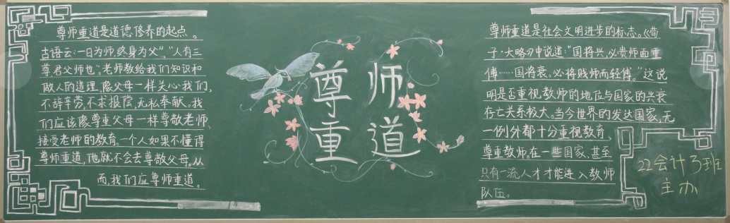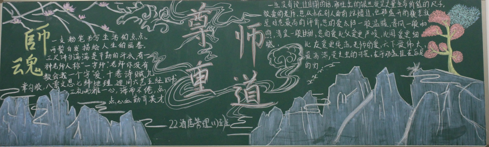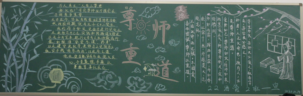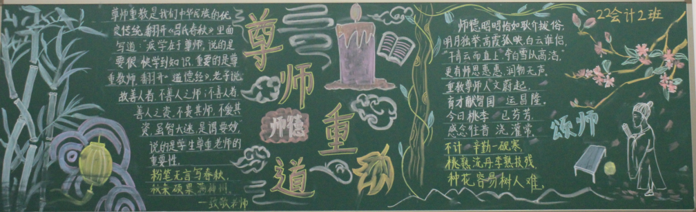 为了加强师德师风建设,增强全体教师教书育人、为人师表的责任感和使命感,积极开展师德师风宣传教育活动,努力营造良好的师德师风舆论环境和氛围。永利集团304am登录团总支根据学校师德师风建设工作安排,于10月中旬在22级团支部中组织开展“尊师重道”宣传教育板报评比活动。