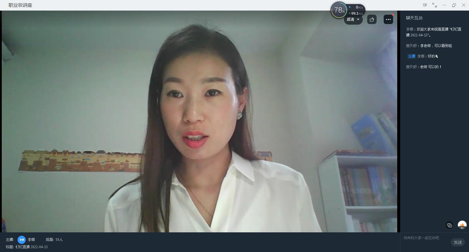 毕业季来临,为帮助学生顺利的进入职场,提升自身职业形象,4月13日,永利集团304am登录特邀安徽广播影视职业技术学院李娜老师,利用钉钉直播间召开了职业妆容专题讲座。有100多名学生进入直播间聆听了本次专题讲座。