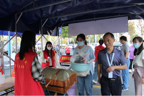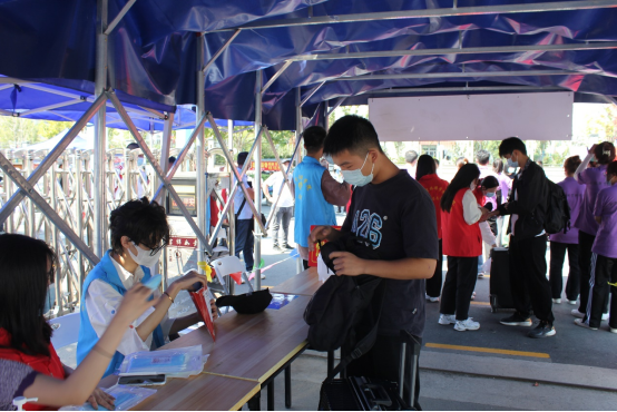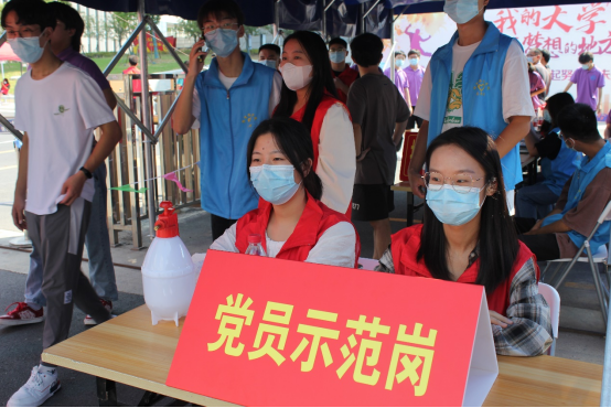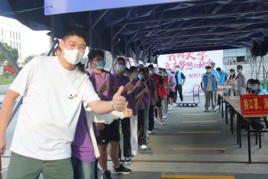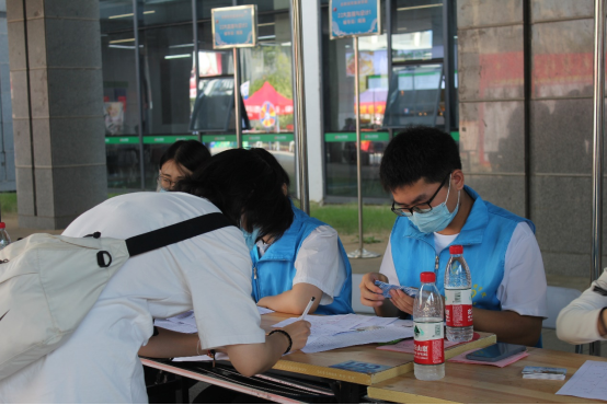 校园内的志愿者们全部就位 ,他们以饱满的精神状态投入到工作之中。