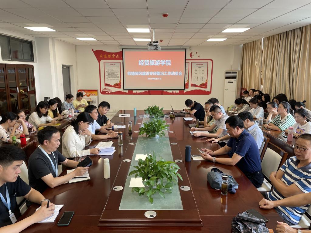 为切实贯彻落实中共安徽省委教育工委、安徽省教育厅在师德专题教育中开展高校师德师风建设问题专项整治的相关文件精神,进一步规范教师履职履责行为,落实立德树人根本任务,9月21日下午,我院召开了师德师风建设专项整治工作动员会。全院教职工参加了会议。