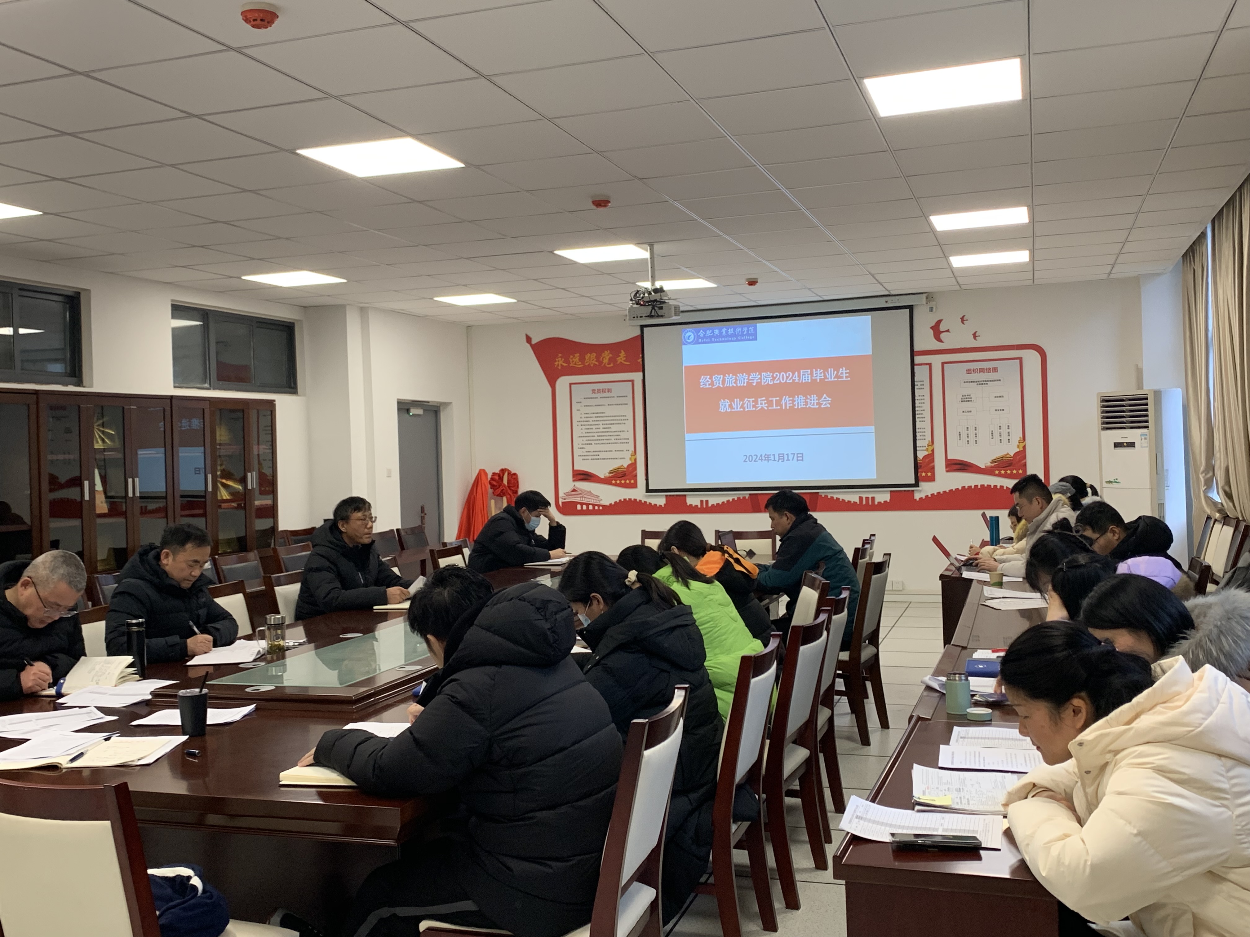 1月17日下午,永利集团304am登录在经贸楼党员会议室召开2024届毕业生就业征兵工作推进会,学院党总支书记梅亚松、副院长陈继林、综合办主任高荣明、各教研室主任、全体2024届毕业班辅导员等老师参加此次会议。