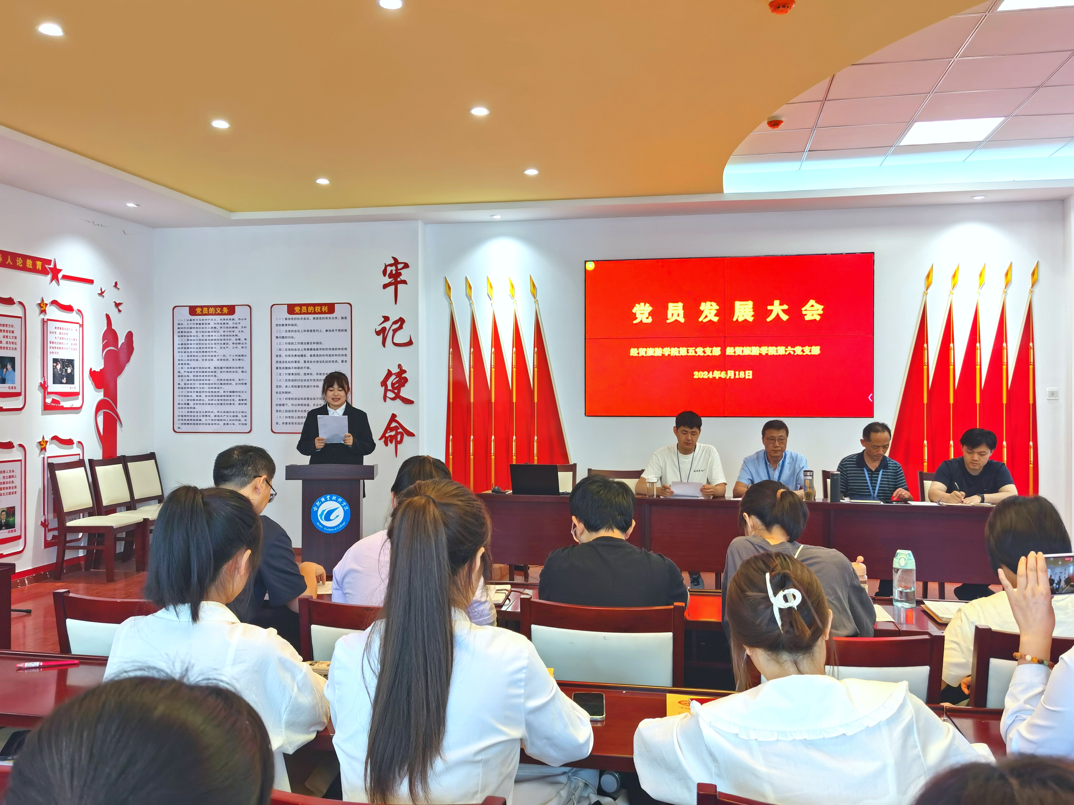 在会上,主持人报告了本次大会的到场情况,宣布了会议的主要议程和具体要求,23名发展对象依次宣读入党志愿书,并从个人情况、入党动机、对党的认识等方面进行了汇报,他们的入党介绍人针对其思想、学习、工作、生活等日常表现进行综合评价,指出了他们的优缺点,并对发展对象是否同意接收发表意见。第五党支部宣传委员董如恺、第六党支部组织委员刘晓璐分别向大会报告对发展对象的审议情况。与会党员对发展对象能否入党进行了充分的讨论。经无记名投票表决,一致同意接收闫雨牧等23名同志为中共预备党员。