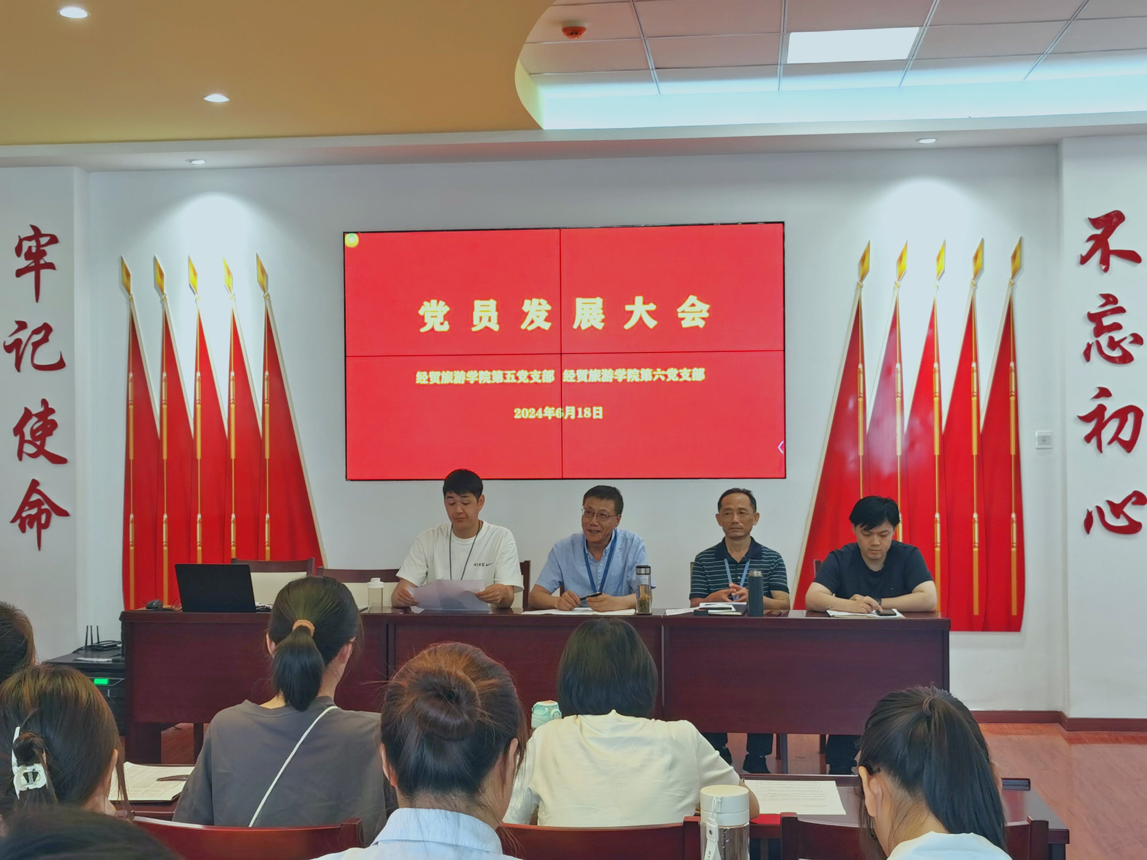 6月18日下午,永利集团304am登录第五党支部、第六党支部在经贸楼三楼党性体验馆召开党员大会,讨论接收闫雨牧等23名同志为中国共产党预备党员。会议由第五党支部书记王明明主持,两个支部的全体党员参加了会议。
