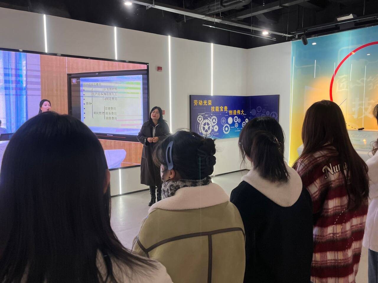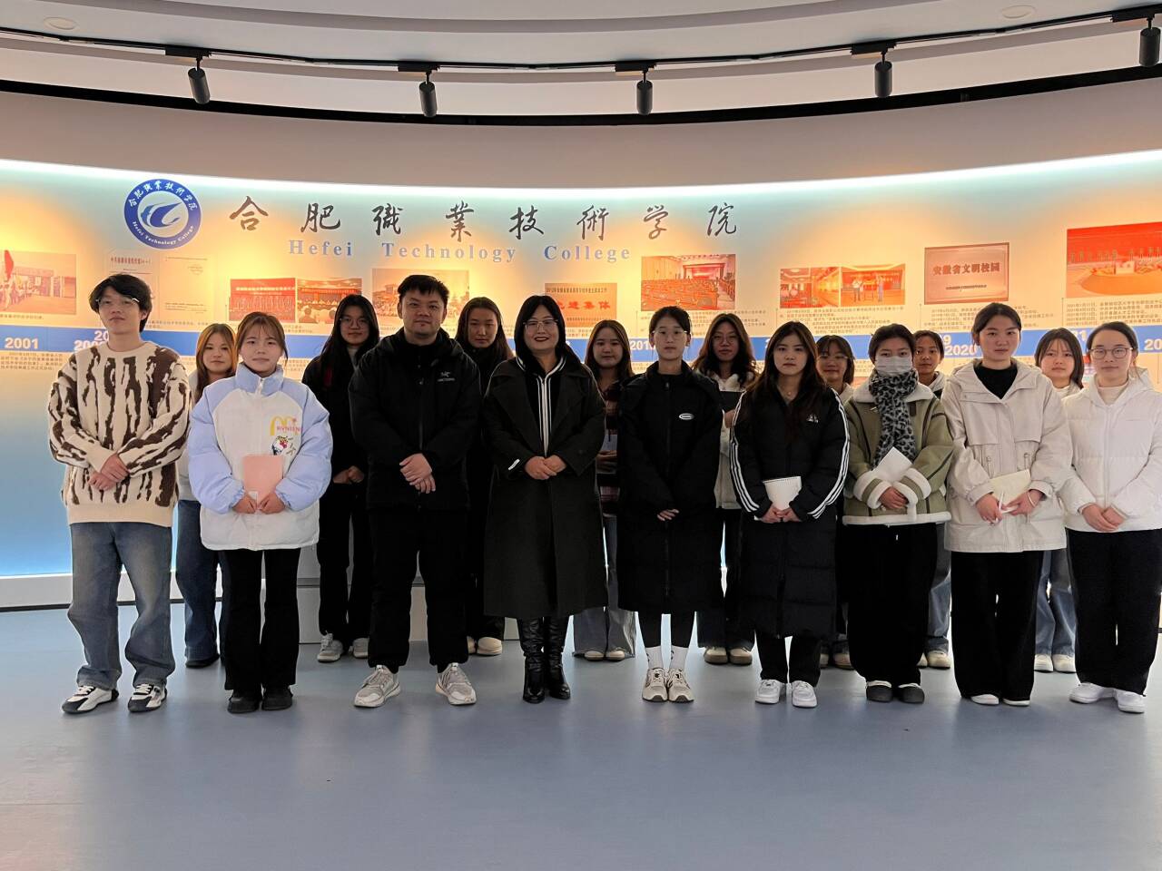 姚启芳老师以学校发展历史为时间轴线,带领团队成员走进每一个展厅,从动作规范、形象礼仪、语言表达等方面,用幽默风趣的语言向社团学生认真细致地做了示范。董如恺老师指出,校史馆是文化育人的重要基地,是集中展示学校形象的亮丽名片,是学校历史文化的重要载体,是社会各界了解学校的重要窗口;讲解员是校史文化的传播者,讲好校史对宣传学校、助力学校发展具有重要意义,他要求讲解团队成员,一是要熟知讲解词,深入挖掘校史故事,用情讲好校史,用心做好服务;二是要厚植爱校荣校情怀,用青春讲述合职故事;三是要珍惜和利用好校史馆实践平台,勤学苦练,在实践中提升自己的综合素质。