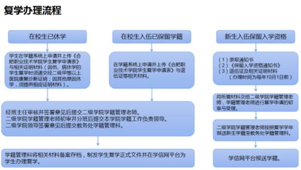 (3)学籍管理科将相关材料备案存档,制发学生复学正式文件并在学信网平台为学生办理复学。